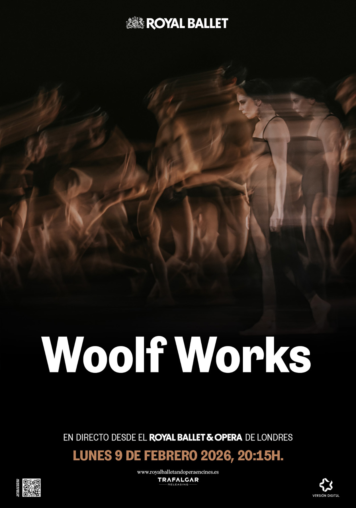 Emisión en cines desde la Royal Opera House de Londres del Ballet de Max Richter: WOOLF WORKS, coreografiado por Wayne McGregor. Woolf Works es un collage de temas extraídos de Mrs Dalloway, Orlando, The Waves y otros escritos de Virginia Woolf. Creado en 2015 para The Royal Ballet, este tríptico galardonado con un premio Olivier captura la esencia del espíritu artístico único de Virginia Woolf.