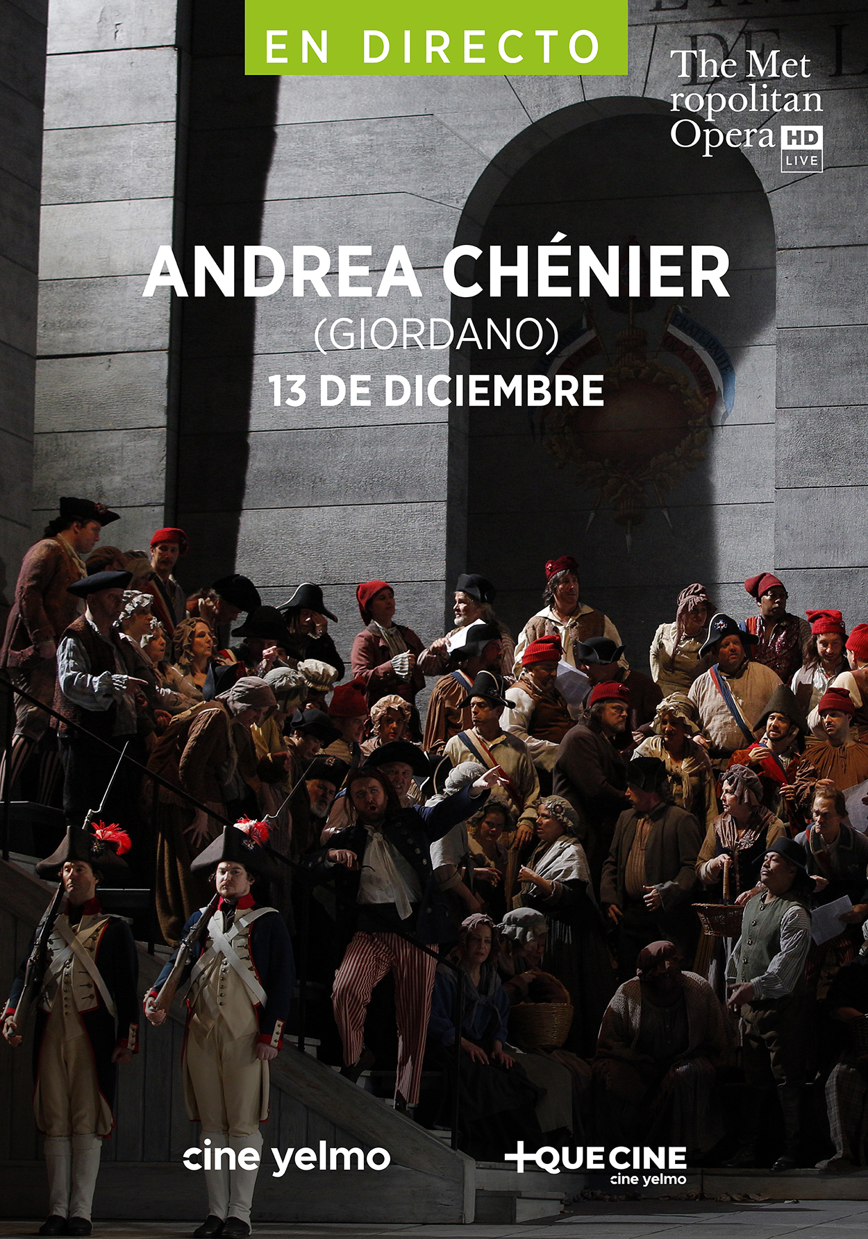 Emisión para cines desde la Metropolitan Opera House de Nueva York de la ópera histórica-dramática en cuatro actos de Umberto Giordano, cantada en italiano. La apasionada tragedia de Giordano tiene como protagonista al tenor Piotr Beczała, quien interpreta al virtuoso poeta que cae víctima de la intriga y la violencia de la Revolución Francesa. Beczała se reúne con la soprano Sonya Yoncheva como la amante aristocrática de Chénier, Maddalena di Coigny, y con el barítono Igor Golovatenko como Carlo Gérard, el agente del Reinado del Terror que sella sus destinos. El director invitado principal del Met, Daniele Rustioni, sube al podio para dirigir la impactante puesta en escena de Nicolas Joël.